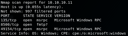 nmap -sC -sV -oA nmap/initial.tcp 10.10.10.11