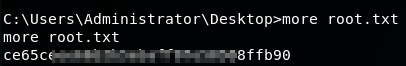 And we can now grab the root.txt flag from the Administrator Desktop: